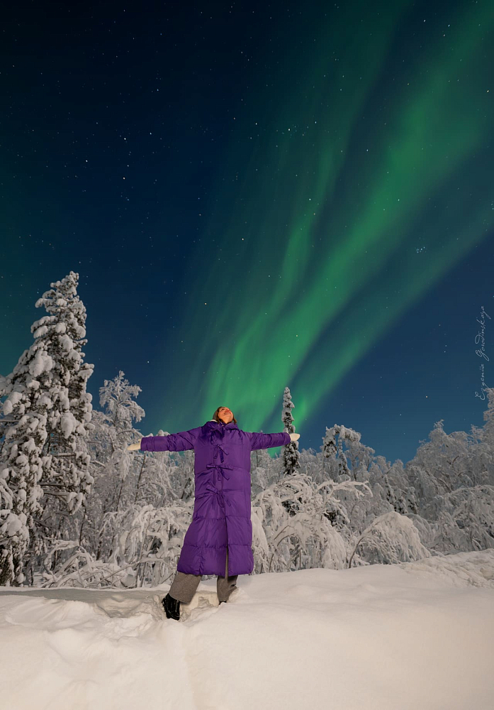 - Программа тура: проживание 3 ночи в Мурманске, этническая деревня, катание на собачьих упряжках и знакомство с северным оленем, Териберка, айс-флоатинг в кольском заливе, охота на северное сияние (2 выезда)