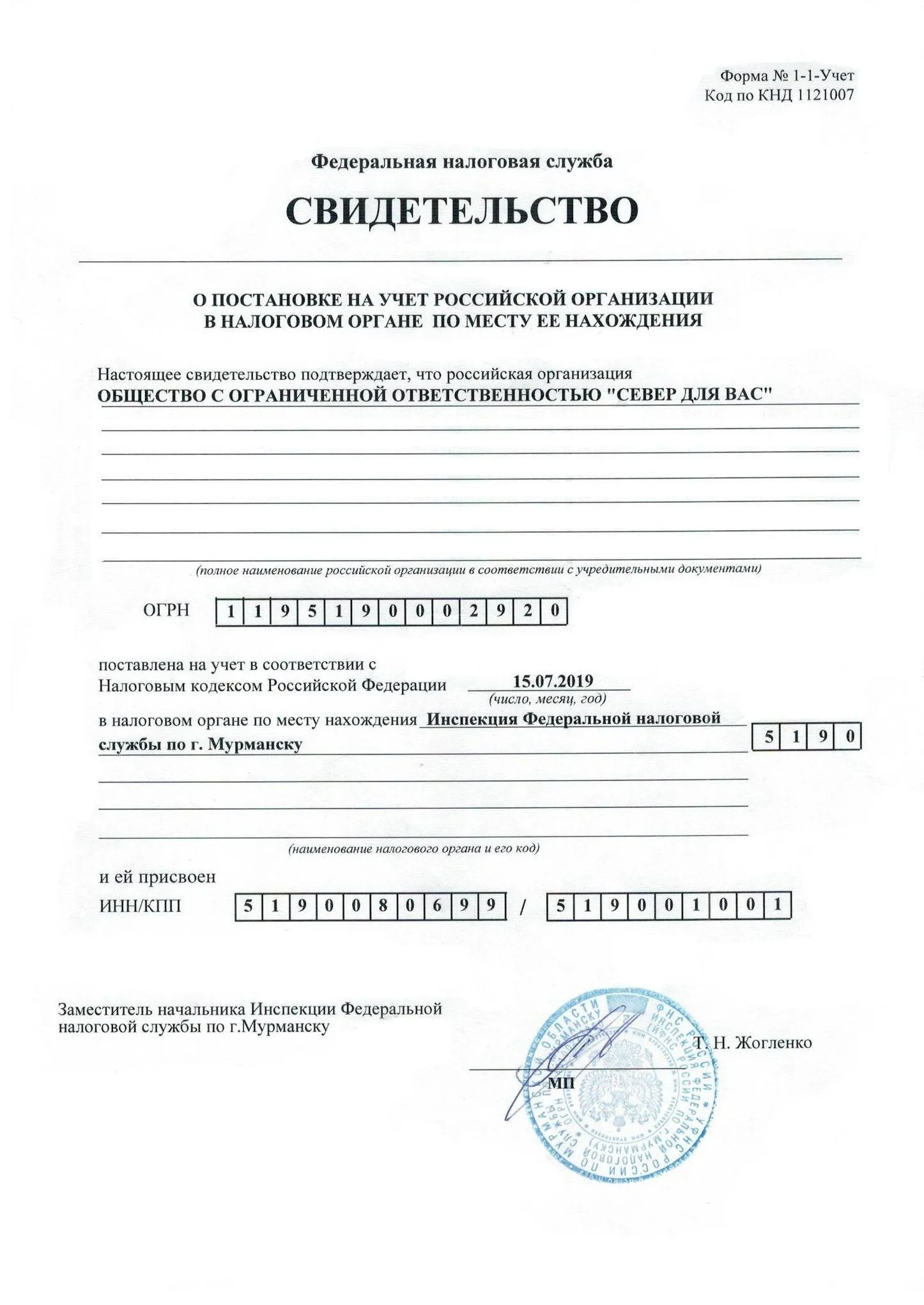 ОГРН 1195190002920