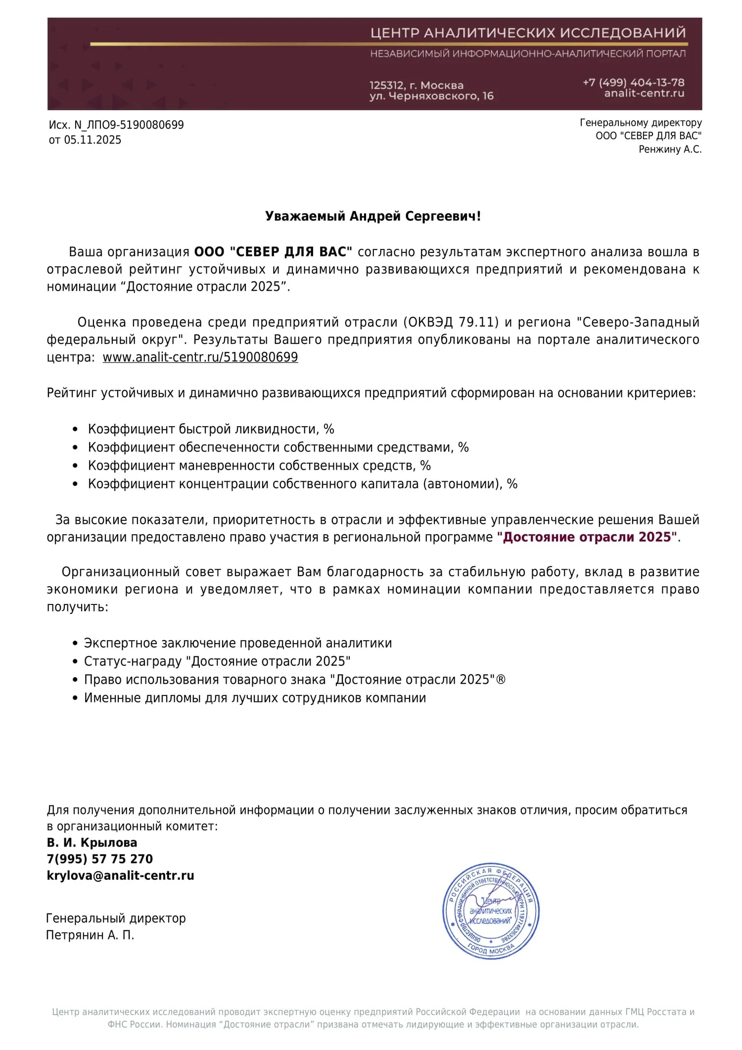 Генеральный директор Ренжин Андрей Сергеевич