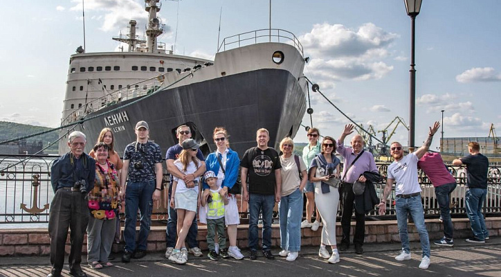 Локация: Мурманск, порт приписки, Атомный ледокол «Ленин». Постоянно ошвартован у причала Морского вокзала по адресу: Портовый проезд, 25. Координаты для навигатора: 68.9797° с. ш. 33.0487° в. д.